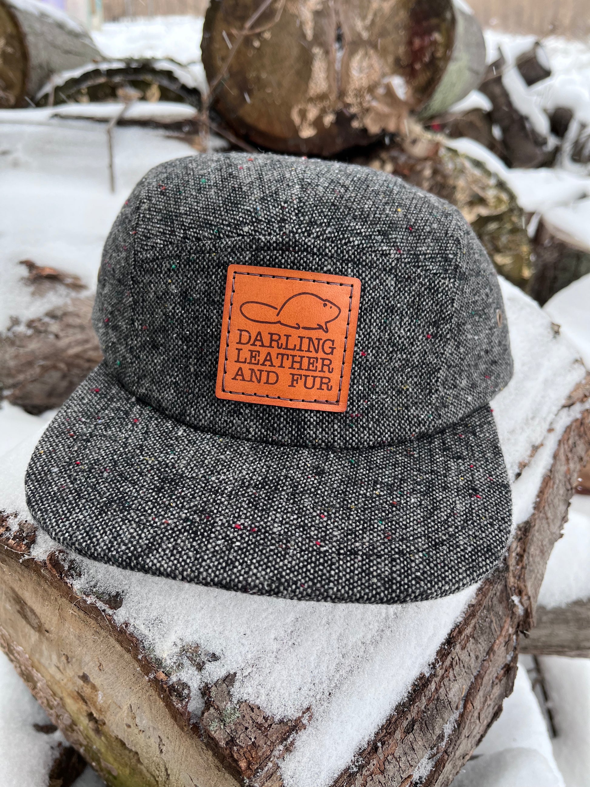The Darling Leather And Fur hat has a premium leather logo patch, on a black wool tweed adjustable hat. These hats are "one size fits most" up to head circumference of 23.5” If you want to represent DLAF out in the wild, order a logo hat!