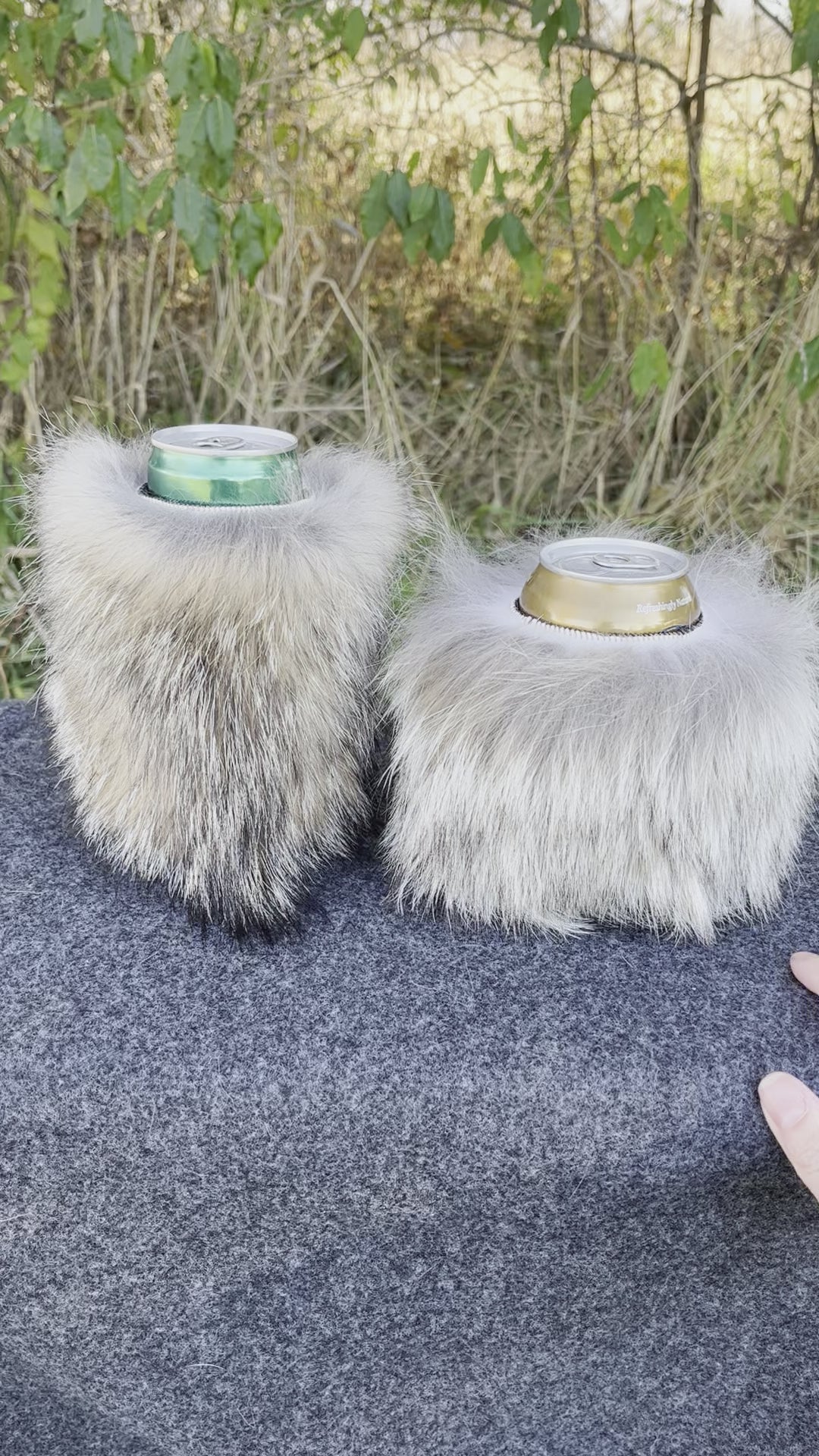 This listing is for one coyote can cooler. Handmade in Michigan, with real fur, these fur can coolers will keep you stylish, your drink cold, and your hand warm! They will fit cans and bottles, and are lined with a standard or slim/tall neoprene can cooler to keep your drink secure. You will receive one can cooler similar to the those pictured, some natural variation is possible.