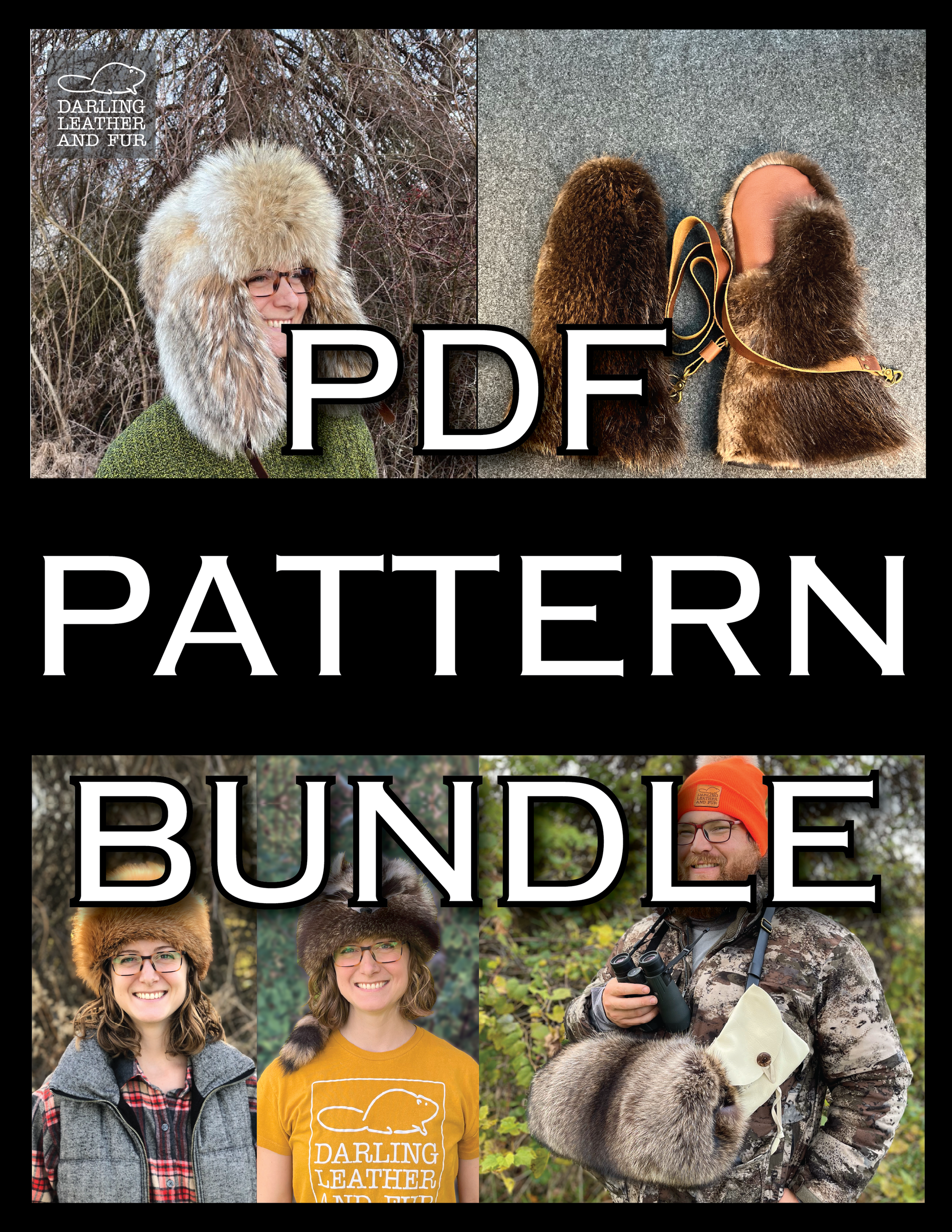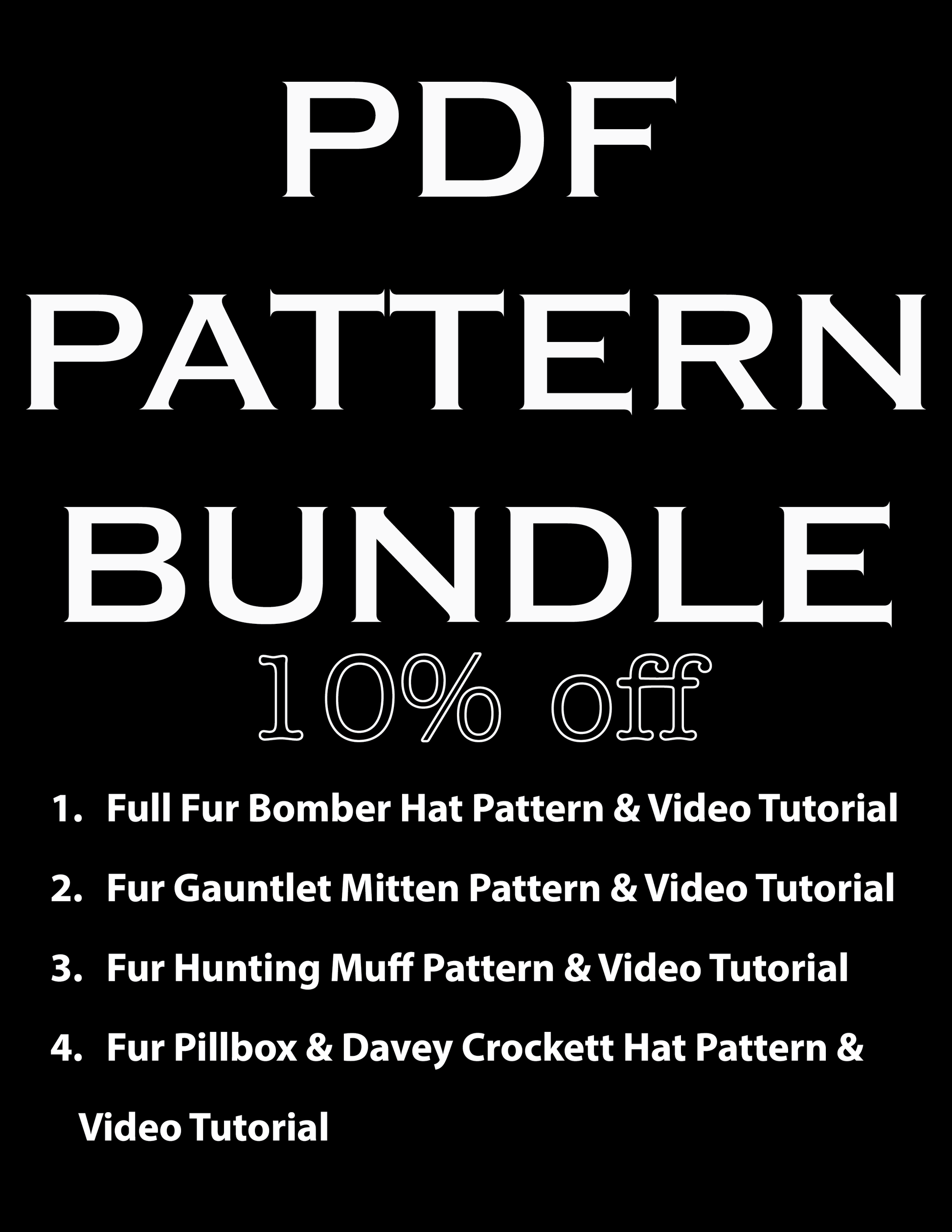 PDF Digital Pattern Bundle: Bomber Hat, Hunting Muff, Mittens, Pillbox & Davey Crockett Hat
