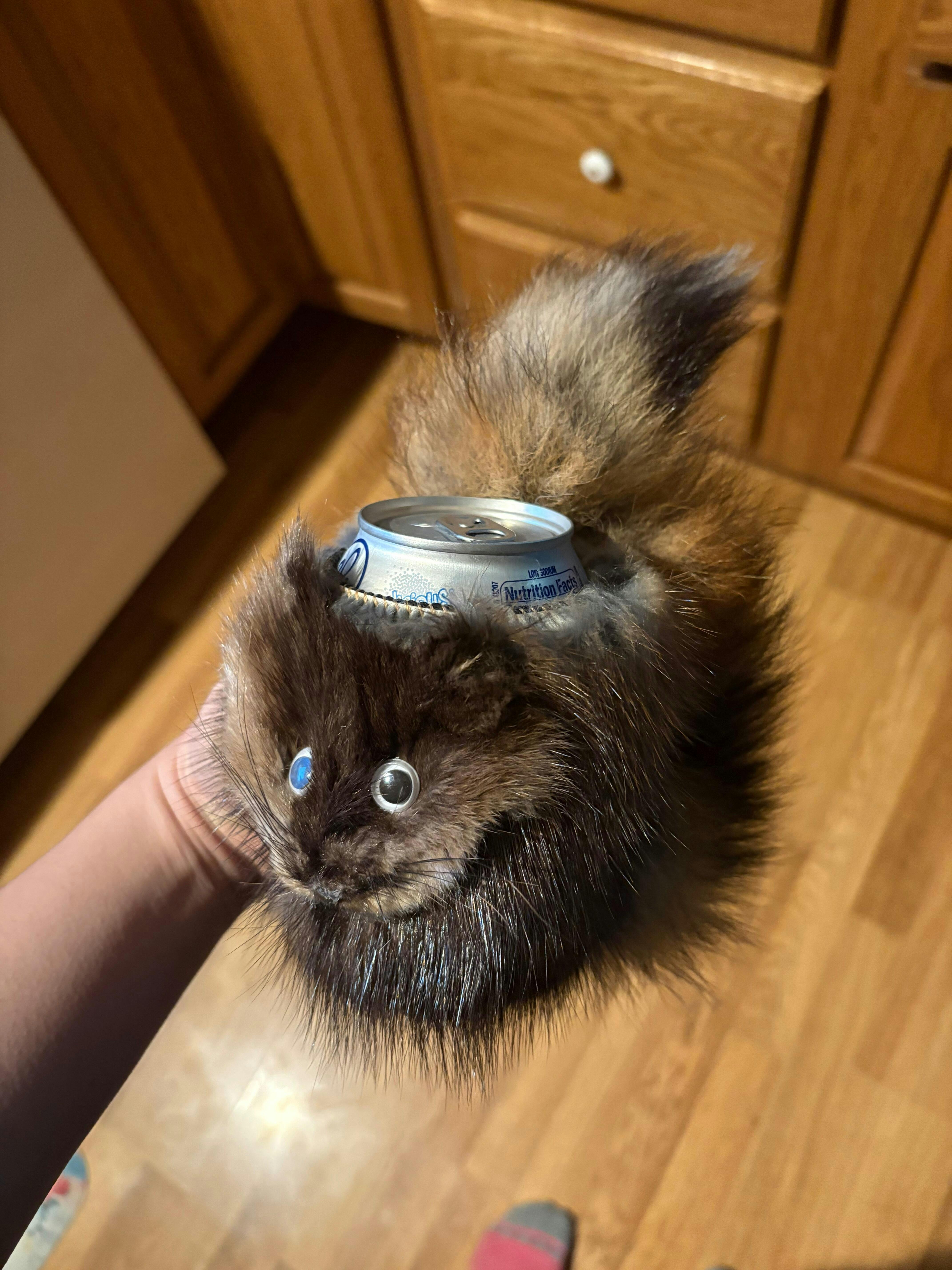 This listing is for one "squirrel" can cooler with face and tail, made to look like a squirrel using muskrat and fox or coyote tail, it does not contain any actual squirrel. Handmade in Michigan, with real fur, these fur can can coolers will keep you stylish, your drink cold, and your hand warm! They will fit cans and bottles, and are lined with a standard neoprene can cooler to keep your drink secure. You will receive one can cooler similar to the those pictured, natural variation is possible.