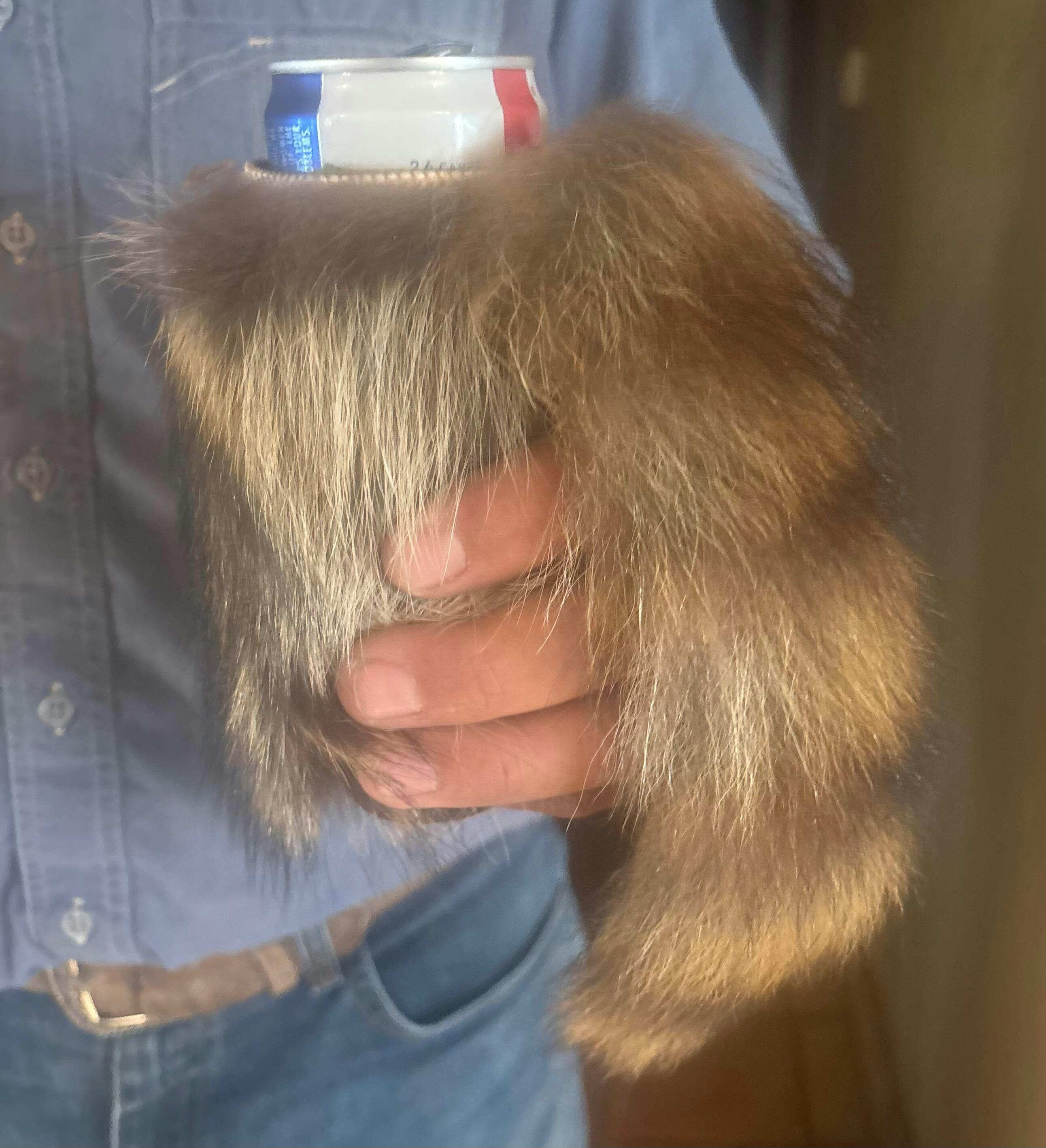 Handmade in Michigan, with real raccoon fur and tail, these fur can coolers will keep you stylish, your drink cold, and your hand warm! They will fit cans and bottles, and are lined with a standard neoprene cozy coozie to keep your drink secure. You will receive one raccoon can cooler similar to the those pictured, some natural variation is possible.